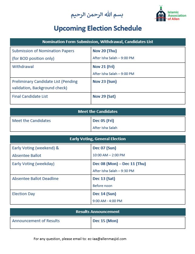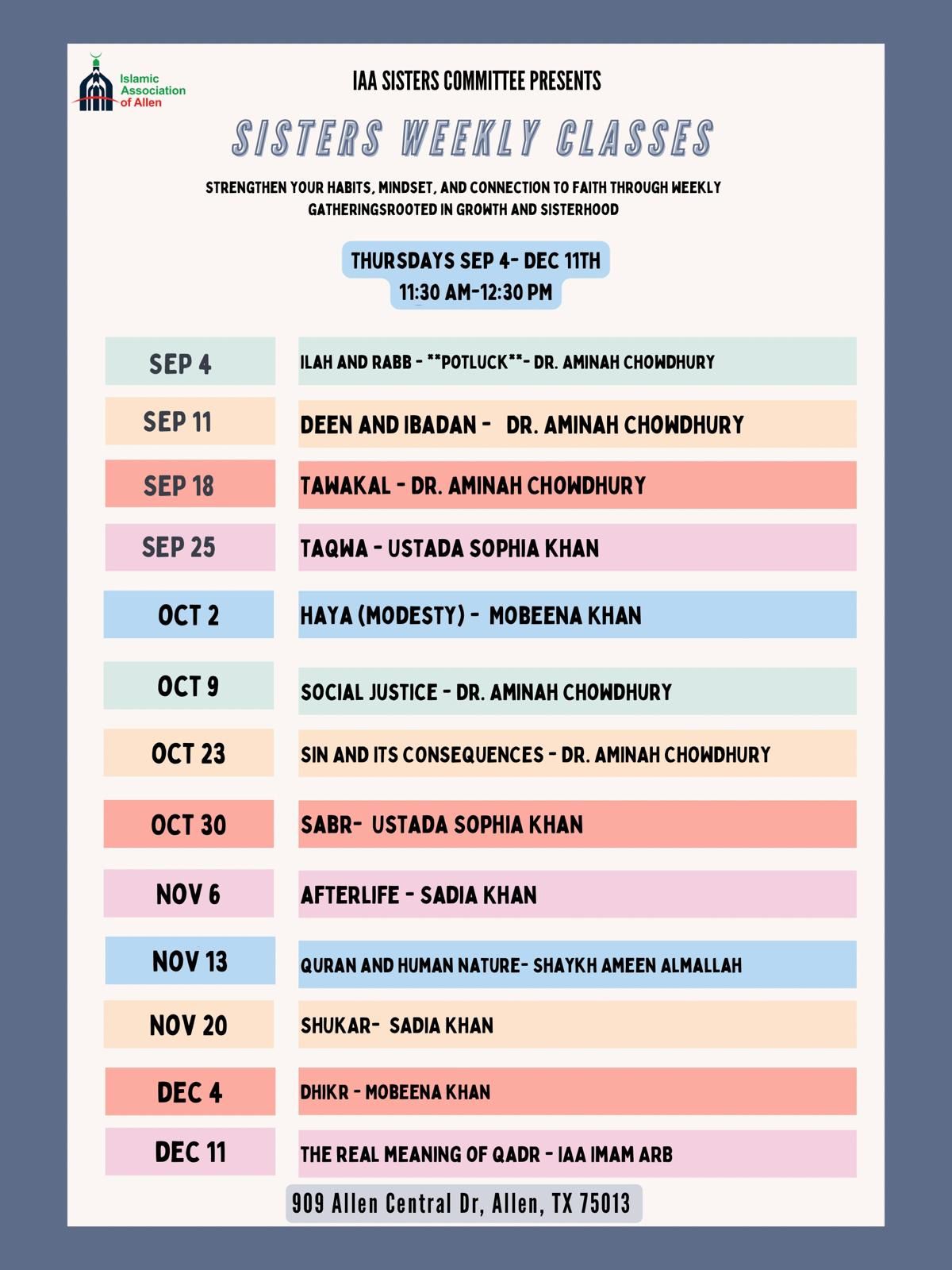 Exclusive to members of our Allen Masjid Community. Registration is required before booking.